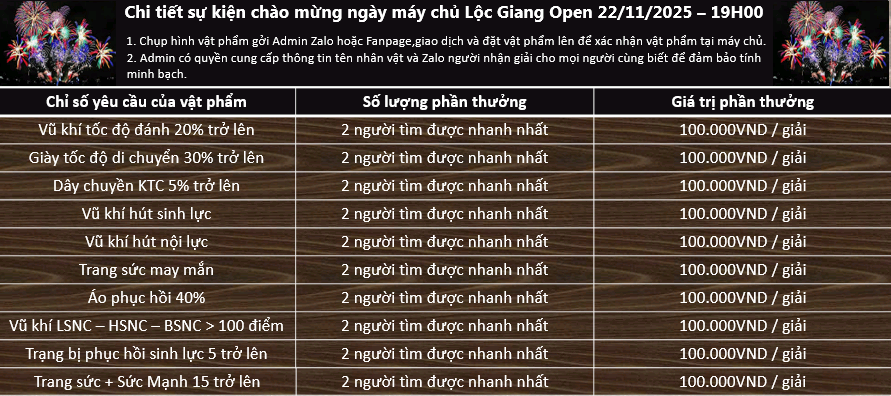 [Máy chủ Lộc Giang] - Sự kiện chào mừng ngày máy chủ Lộc Giang Open