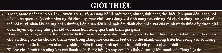 [Máy chủ Lộc Giang] - Trống Bang Hội